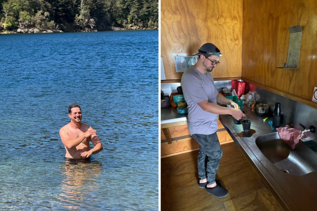 Waiopaoa Hut doubles as a campground, so there were 30 bunks and 18 campers when we were there, all sharing the kitchen and toilets. That was the only downside for me. But all in all this was definitely my favourite hut. It’s right on the lake and has a little beach so you can even go for a swim if you don’t mind the cold. However, there are sand flies! So make sure you bring some Goodbye Sand Fly — it really works.